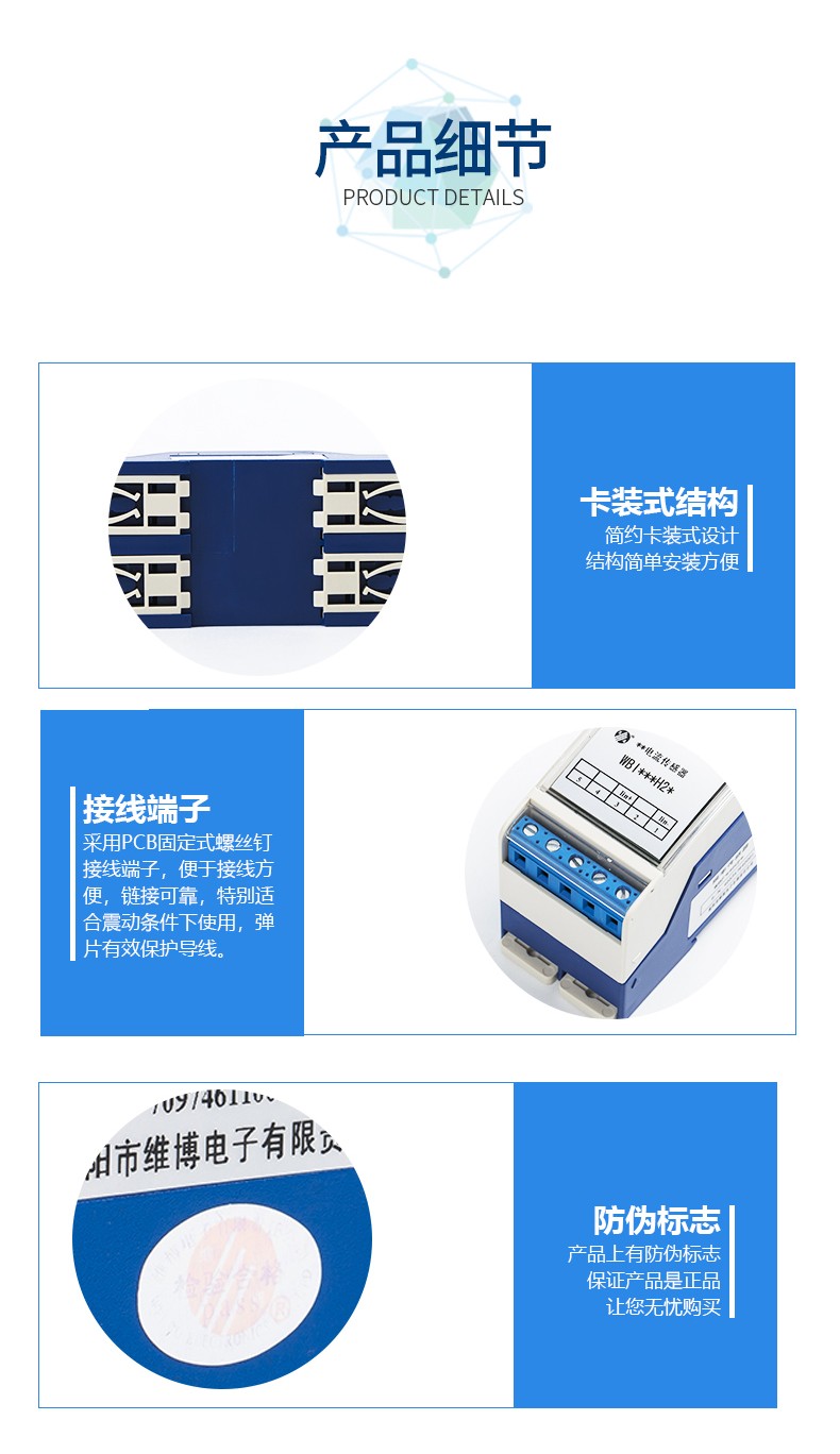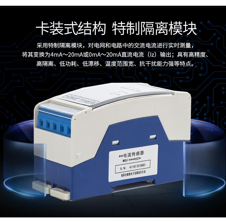 本產(chǎn)品采用特制隔離模塊,對電網(wǎng)和電路中的交流電流進(jìn)行實(shí)時(shí)測量,將其變換為0~20mA、4~20mA直流電流(Iz)輸出;具有高精度、高隔離、低功耗、低漂移、溫度范圍寬、抗干擾能力強(qiáng)等特點(diǎn)。本產(chǎn)品采用卡裝式結(jié)構(gòu),端子接線,安裝方便,使用交流220V電源供電,輸入、輸出、電源之間兩兩隔離。